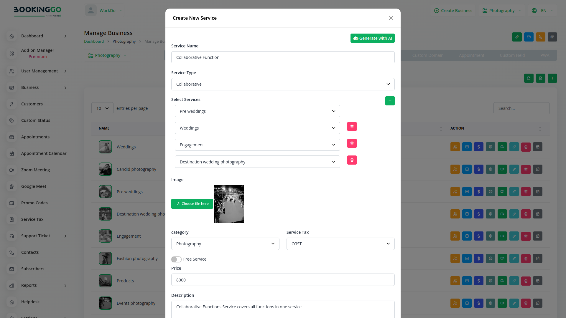 The Collaborative Service Module in BookingGo is designed to enhance your booking process by allowing the integration of multiple services into a single appointment. This feature-rich module simplifies the scheduling process, ensuring a seamless experience for both service providers and customers \ Whether you are managing a spa, salon, or any service-based business, this module will help you efficiently coordinate and offer a variety of services.