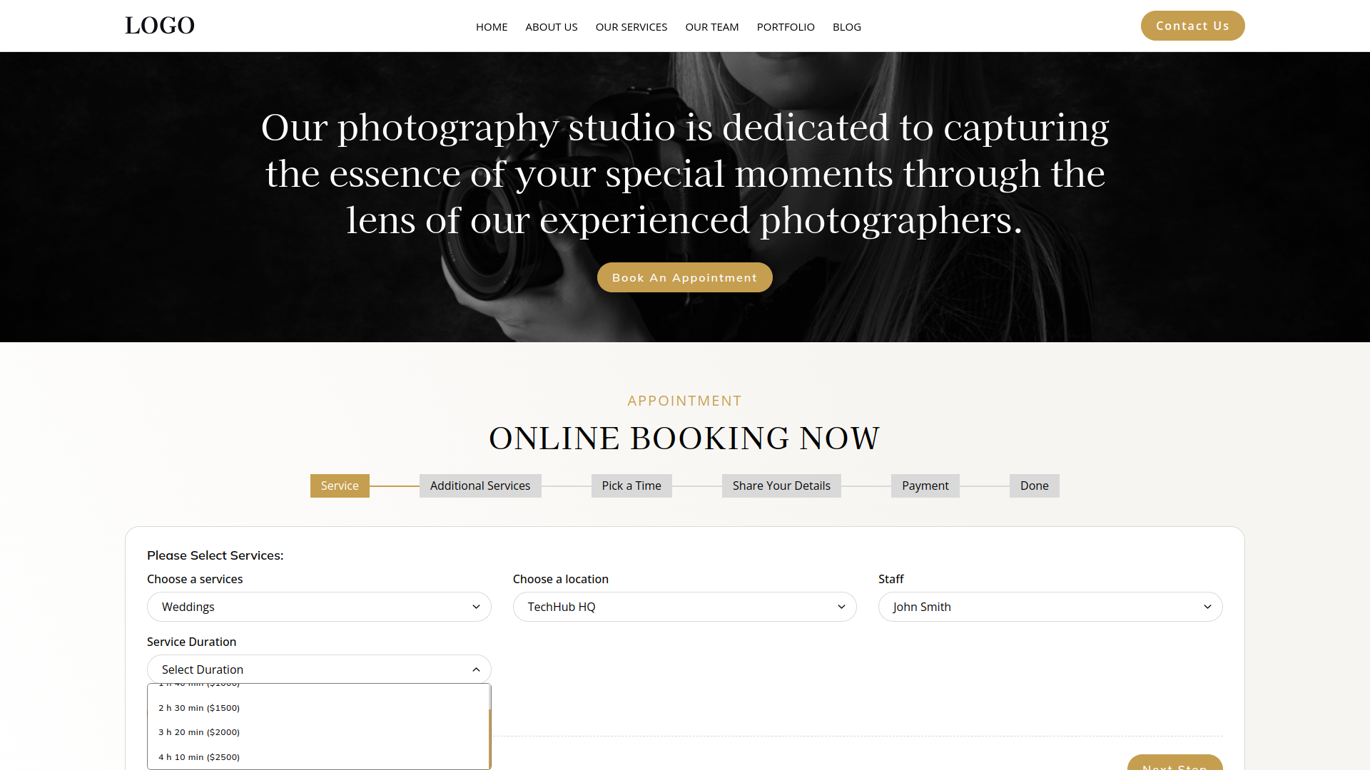 With the Flexible Duration module, BookingGo SaaS users can set up and customize duration options for their services and appointments. This feature enables businesses to offer flexible booking periods, by selecting a service, location, and staff, and by selecting the hours as per choice with the help of the dropdown given below. Customers can choose the duration that best fits their needs, providing a personalized booking experience that improves satisfaction and enhances service delivery.