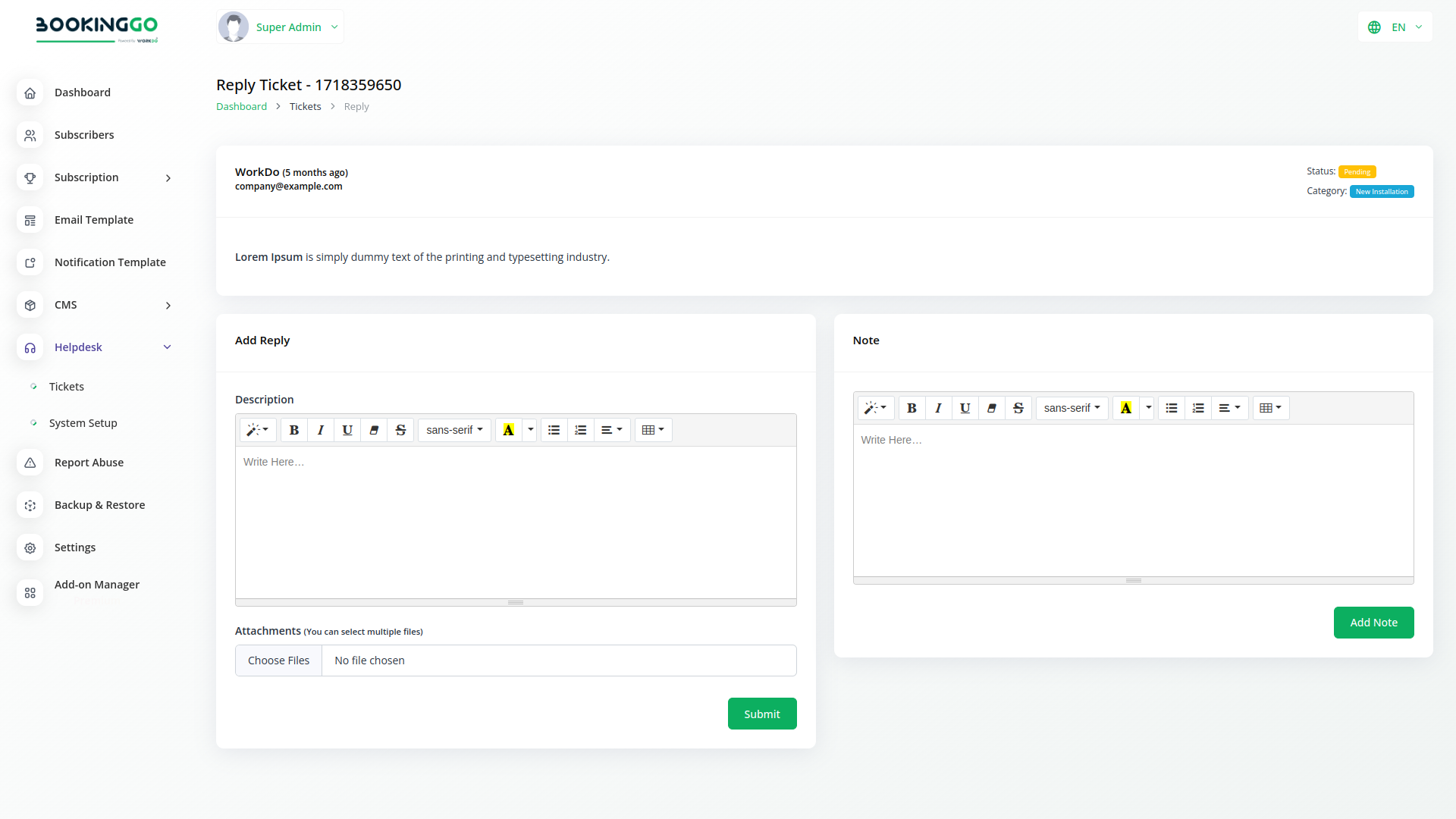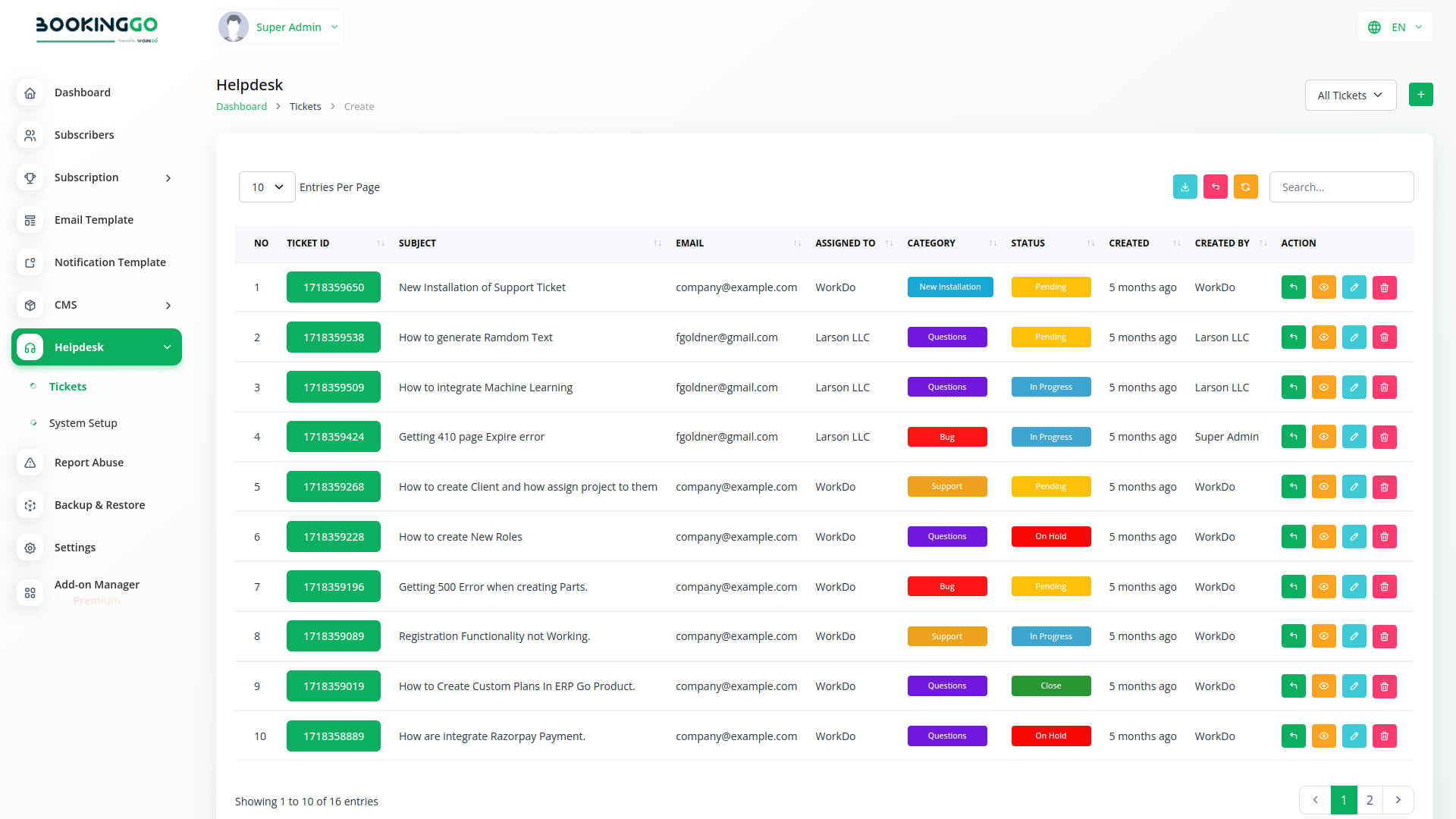 The Helpdesk Module of BookingGo SaaS revolutionizes customer support by providing businesses with a centralized platform to manage and resolve customer inquiries efficiently. With this comprehensive tool, businesses can streamline their support processes, enhance response times, and deliver exceptional service to their customers.