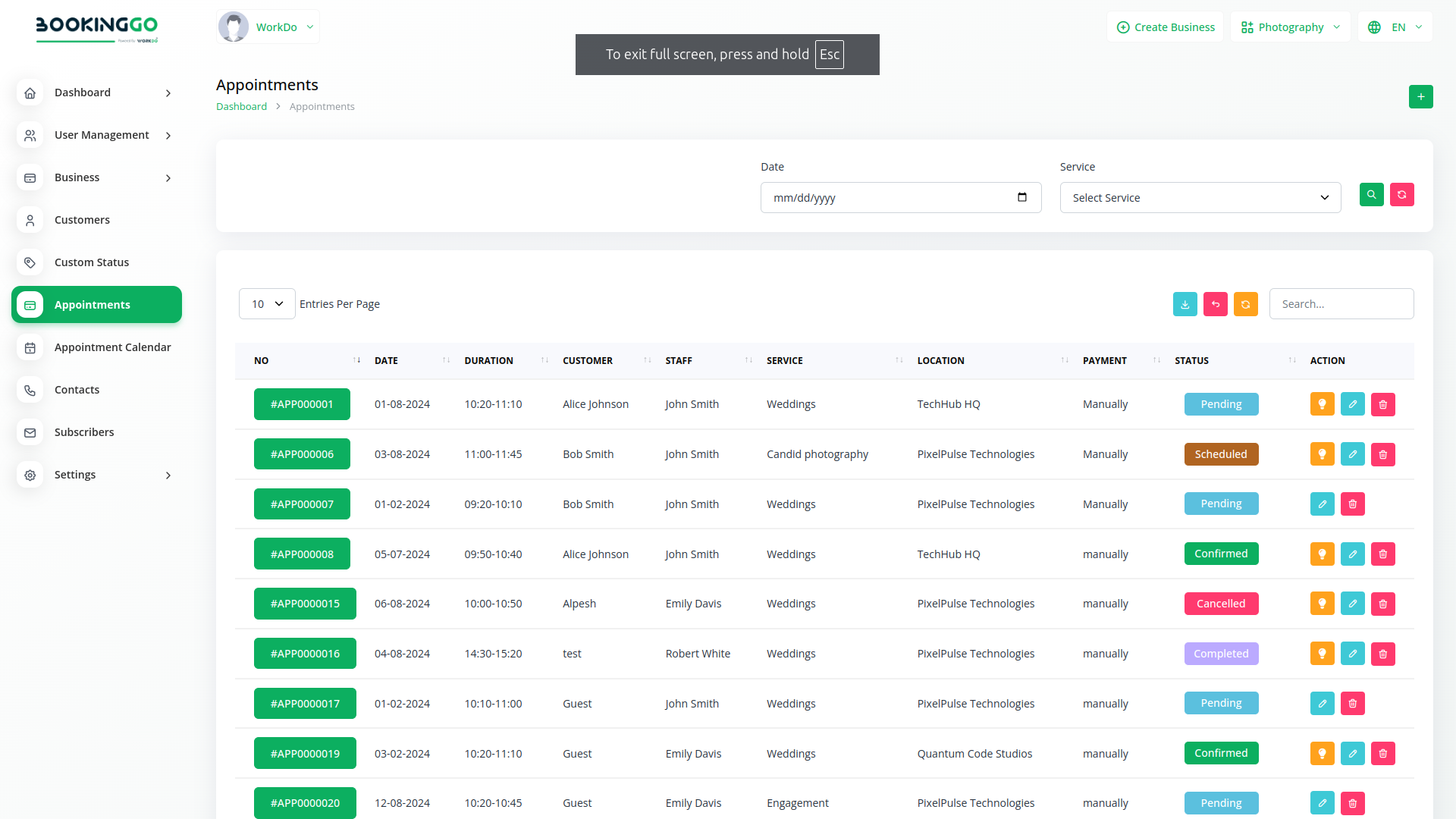 With BookingGo, you can conveniently manage all your business functions from a single location.