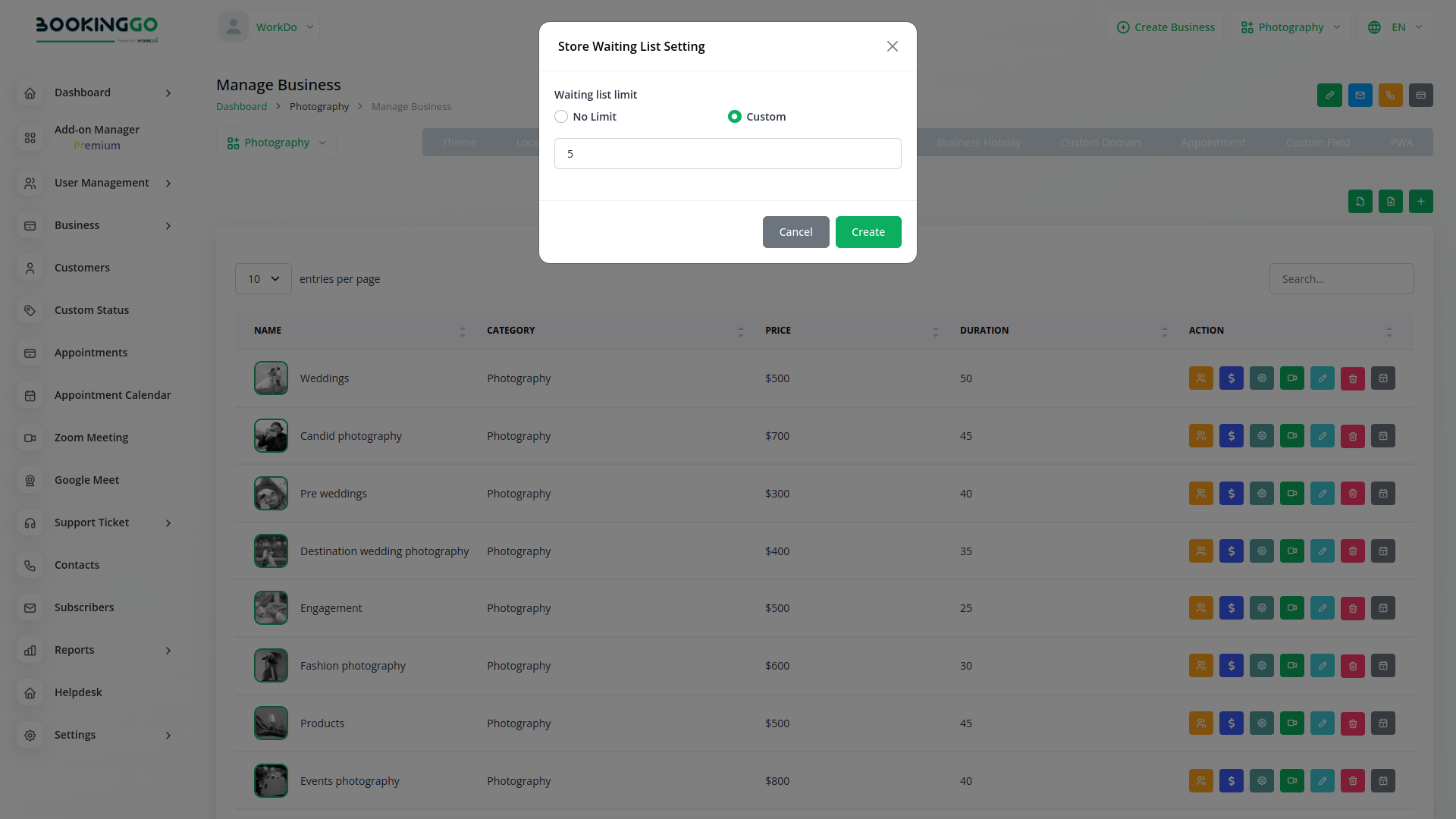 The Waiting List Module in BookingGo is designed to enhance the efficiency and flexibility of your appointment management. This module allows businesses to manage and accommodate high demand by creating a waiting list for fully booked services. By incorporating this feature, BookingGo ensures that businesses can maximize their booking potential and maintain customer satisfaction even during peak times.